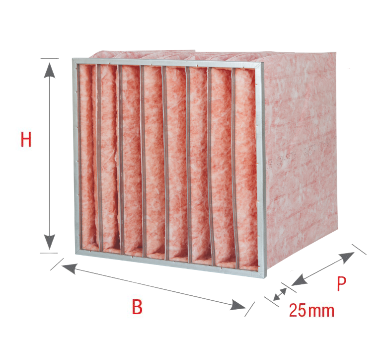 BAG-GLASS filters are made of fiber glass bags. The combination of fine and coarse woven glass fibers guarantees a low initial pressure drop and an excellent dust-collecting capacity in HVAC systems such as: Air conditioning units (ventilation chambers, etc.), air conditioning systems (office buildings, call centers, department stores, hospitals, museums and airports), industrial processes, (pharmaceutical, food, optical industries, etc.) and as a pre-filter for Hepa and Ulpa Filters.