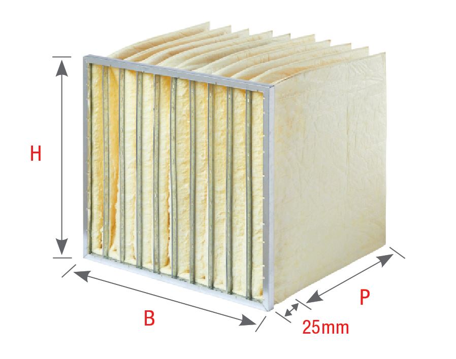 BAG-GLASS filters are made of fiber glass bags. The combination of fine and coarse woven glass fibers guarantees a low initial pressure drop and an excellent dust-collecting capacity in HVAC systems such as: Air conditioning units (ventilation chambers, etc.), air conditioning systems (office buildings, call centers, department stores, hospitals, museums and airports), industrial processes (pharmaceutical, food, optical industries, etc.) and as a pre-filter for Hepa and Ulpa Filters.