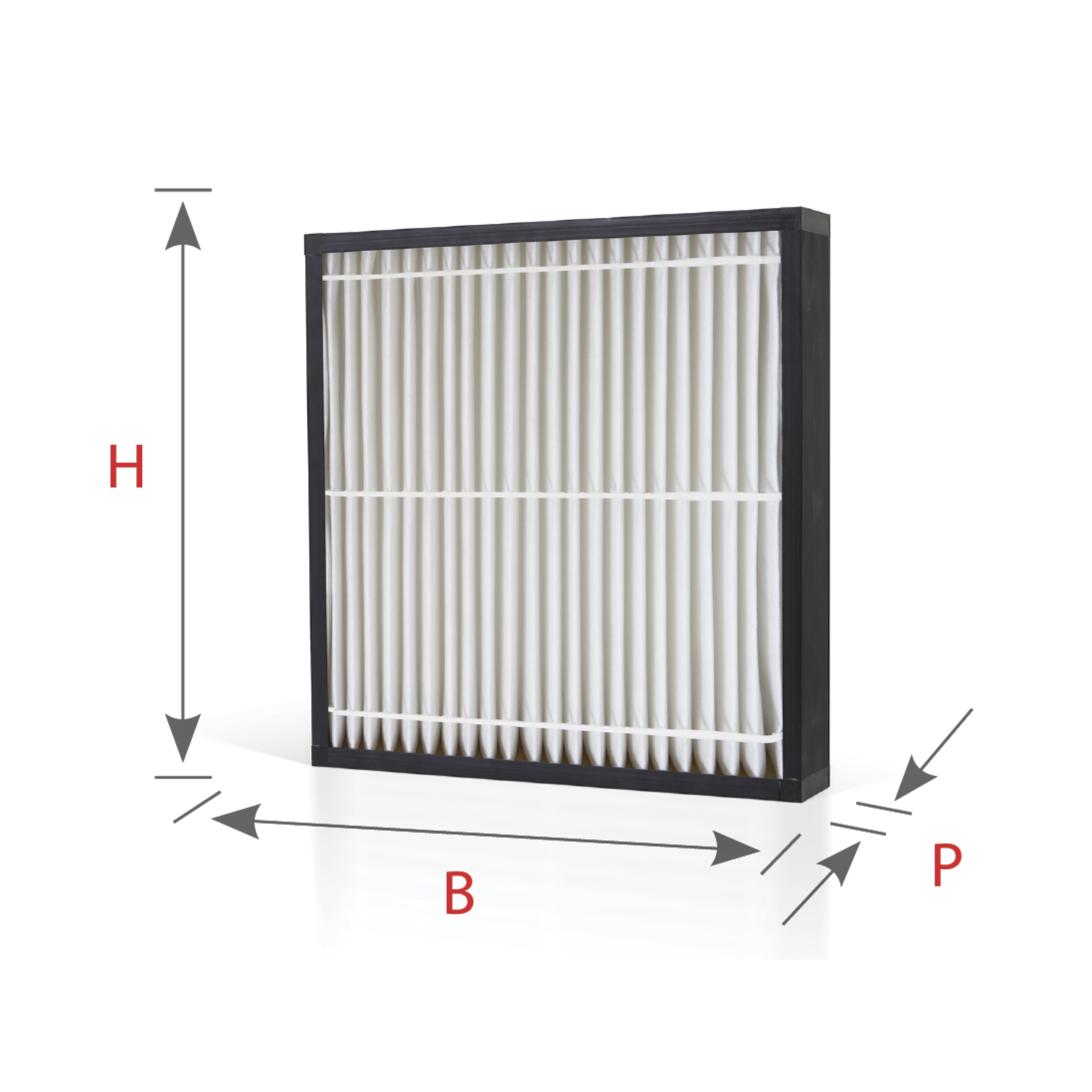 Type: Disposable filter with rough surface, folded in a zigzag with a synthetic, self-supporting media.