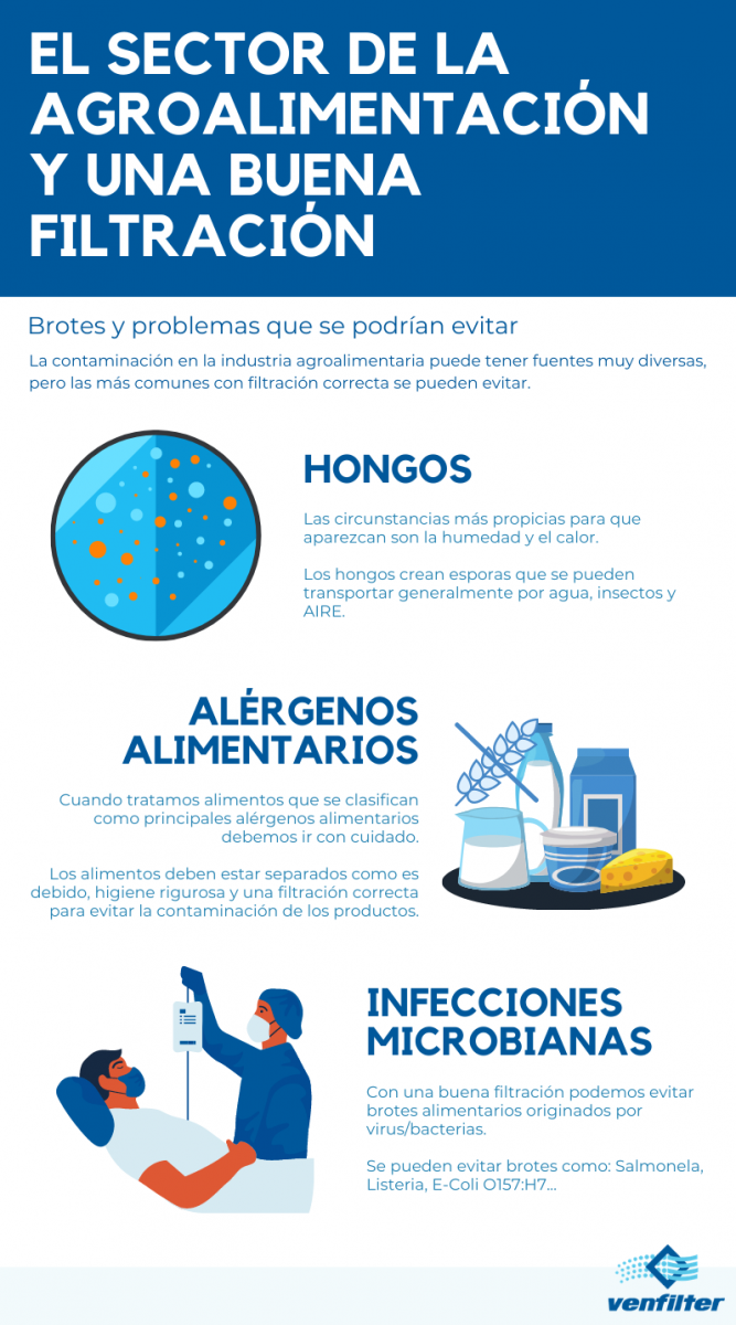 Como se puede ver la contaminación de los alimentos en la industria agroalimentaria puede tener diversas fuentes, pero las más comunes se pueden evitar con una buena filtración en sus instalaciones.